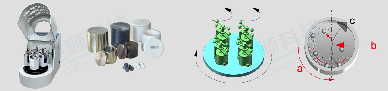 行星球磨機(jī)是在同一主盤上裝有四個球磨罐,當(dāng)太陽輪主盤轉(zhuǎn)動時裝有樣本材料和研磨球的研磨罐圍繞自身的中心軸向反方向進(jìn)行高速自轉(zhuǎn)作行星式運(yùn)動。在一定的速度下,離心力作用使得球磨罐中的研磨球在高速運(yùn)動中對樣品進(jìn)行撞擊、碾壓、研磨,同時也可以用于樣品材料的分散、混合。該產(chǎn)品可干、濕兩種方法研磨和混合粒度不同、材料各異的產(chǎn)品。在選配真空球磨罐時,可在真空狀態(tài)或氣氛保護(hù)狀態(tài)下進(jìn)行研磨制樣,研磨樣品最小粒徑可至0.1微米(即1.0×10mm-4)